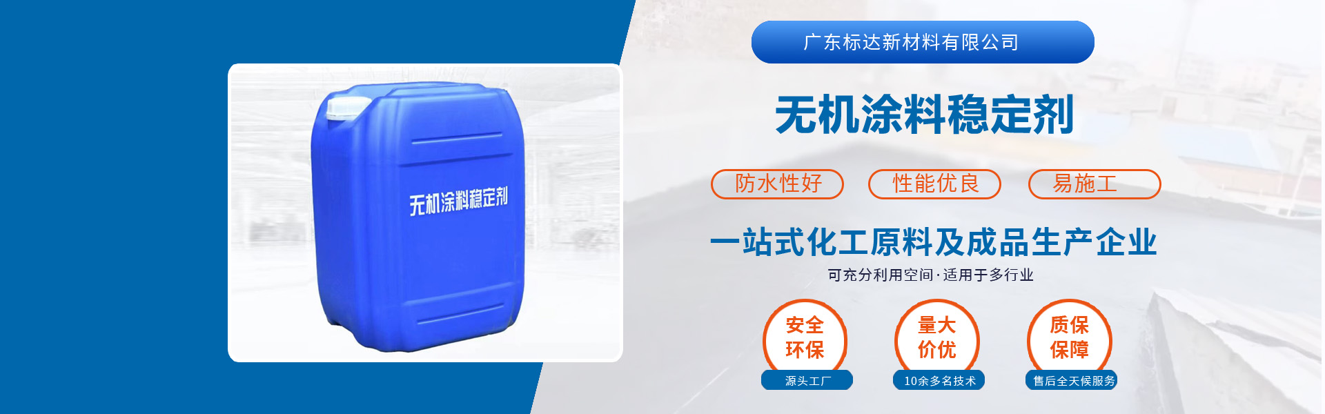 公司主營產(chǎn)品標(biāo)達彩砂固色劑、真石漆穩(wěn)定增強劑、無機涂料、隔熱保溫涂料、無機材料改性穩(wěn)定劑、瓷磚背膠和液體卷材等。我們擁有專業(yè)的化學(xué)化工方向的產(chǎn)品研發(fā)團隊,標(biāo)準(zhǔn)化管理的產(chǎn)品加工廠,以及完善的售后服務(wù)團隊。
